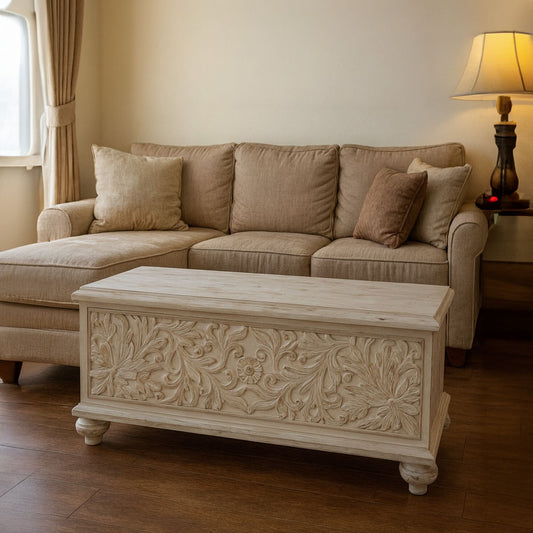 Custom Carved Wood Trunk "Cristina" - Antic Wash