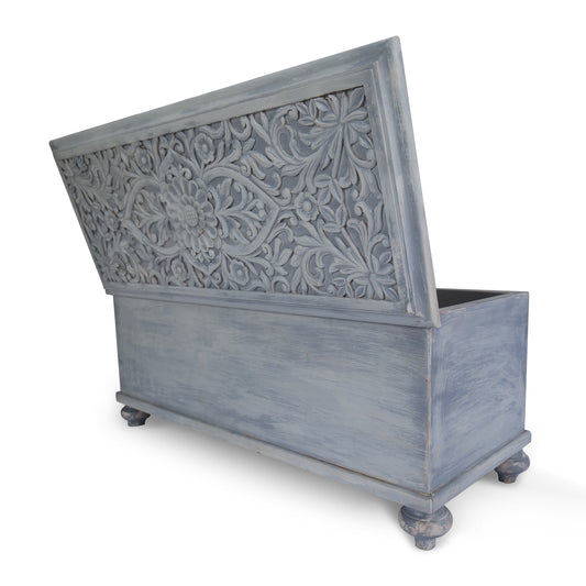 Custom Carved Wood Trunk "Cristina" - Light Grey with Antic Wash