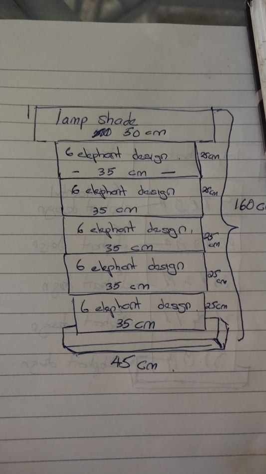 Custom Carved Table Lamp '6 Elephants' - Red Beige - 160cm